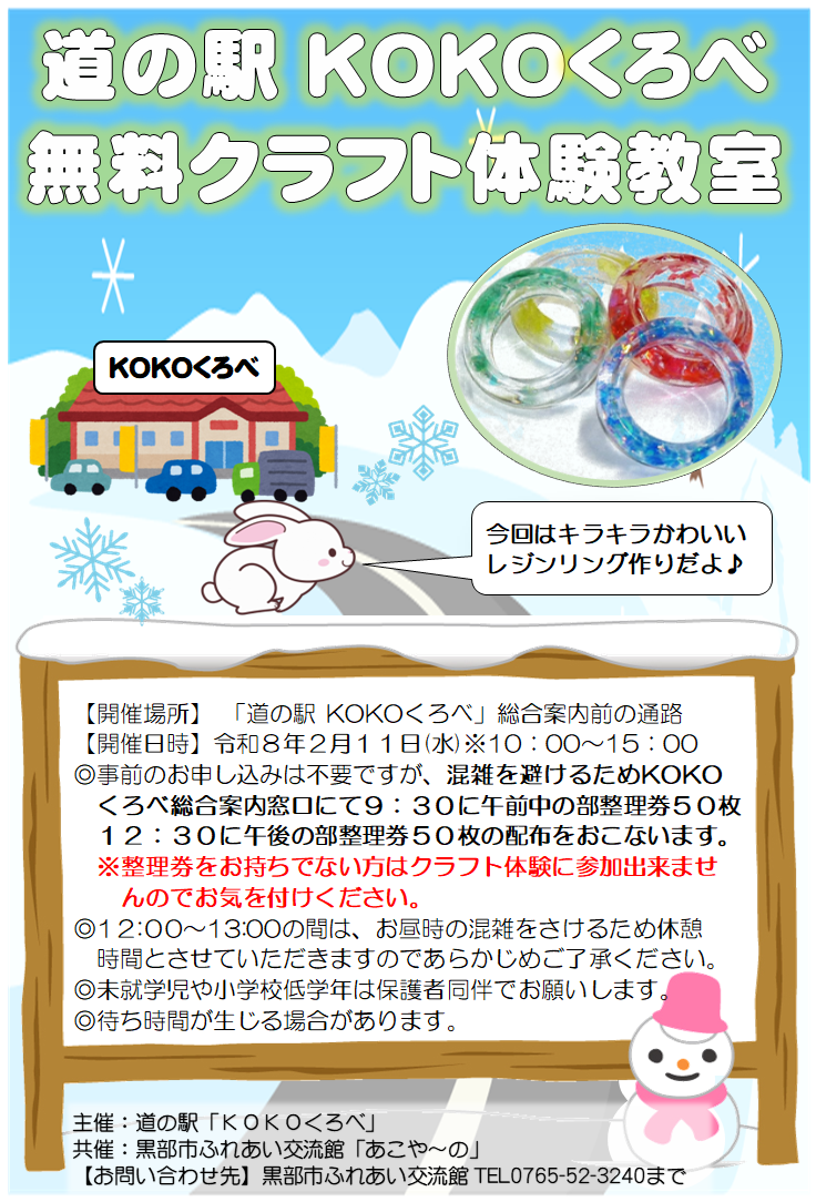 「クラフト体験会inKOKOくろべ」を開催します