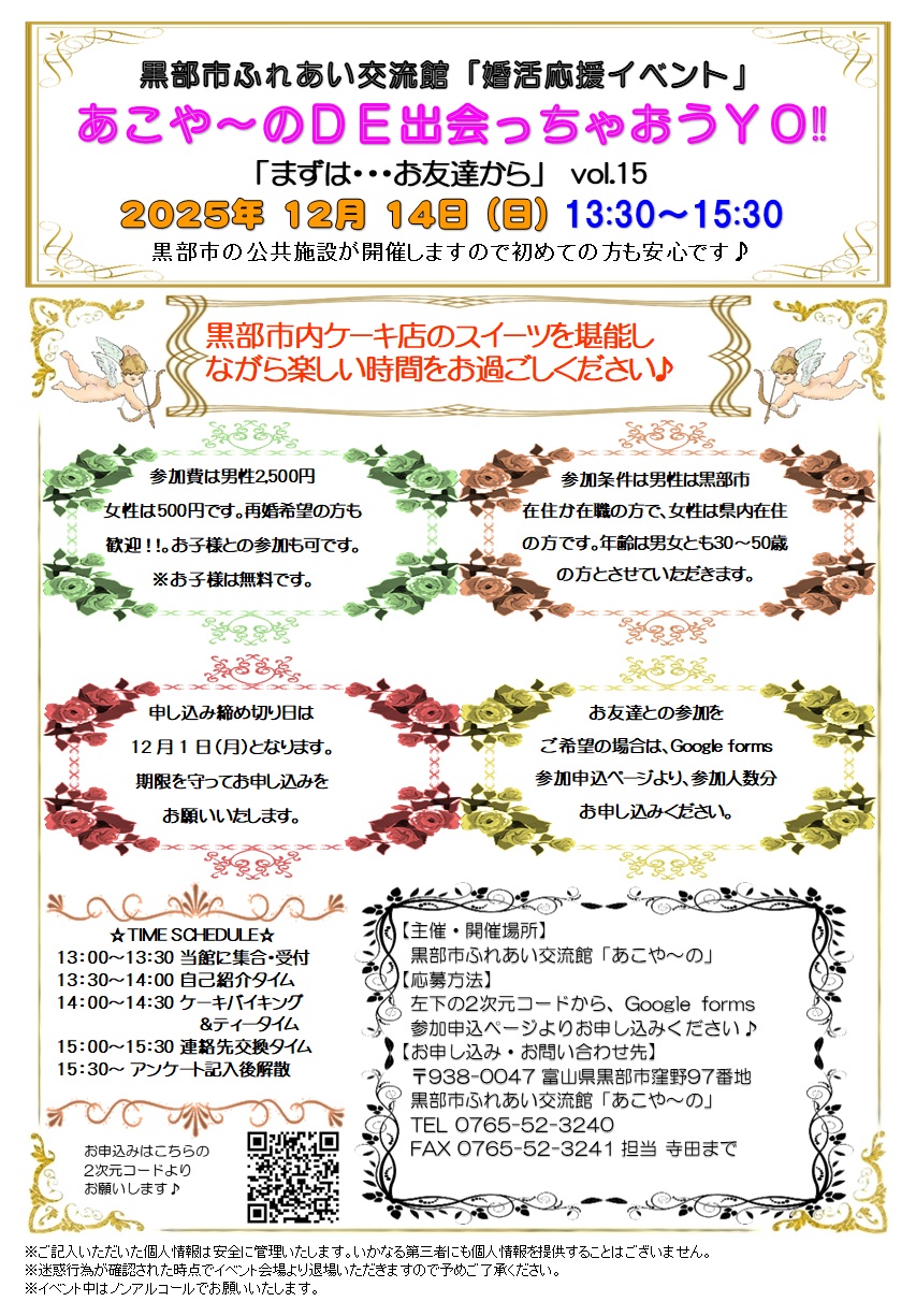 黒部市営の社会教育施設「あこや~の」が贈る婚活応援イベント「あこや~のDE出会っちゃおうYO!!」