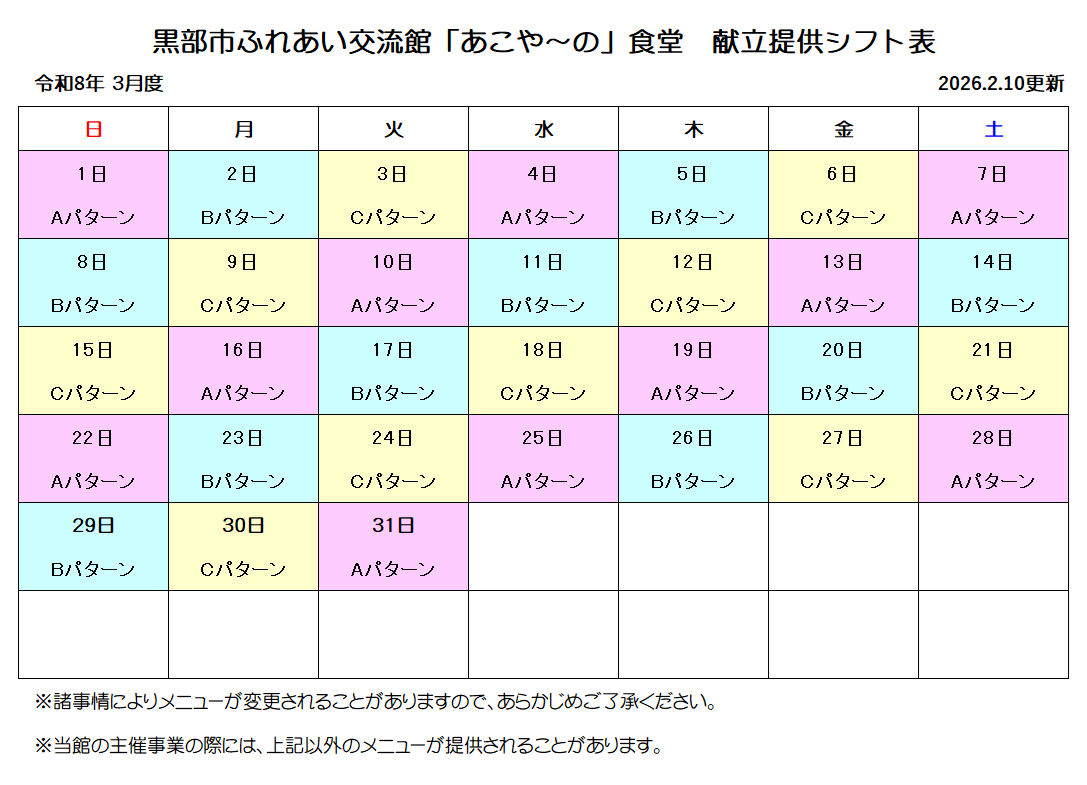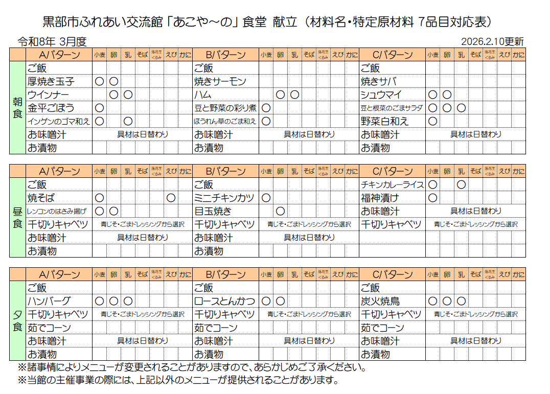 [2026.2.10]【3月度の食堂提供メニューのご案内】